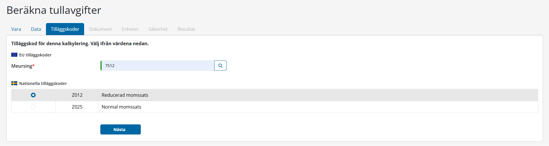 2.3.1 Beräkna tullavgifter